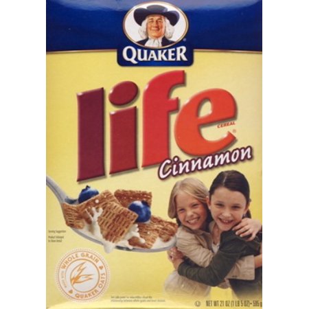 Quaker Life Cereal Cinnamon 18oz Box | Garden Grocer Quaker Life Cinnamon Multigrain Cereal.EST 1877.18 Grams Whole grains.Diets rich in whole grain foods and other plant foods and low in total fat, saturated fat, and cholesterol, may help reduce the risk of heart disease.Per 3/4 Cup.120 Calories.0g sat fat, 0% DV.150mg sodium, 6% DV.8g sugars.Calcium 10% DV.Iron 40% DV. + Add to Favorites