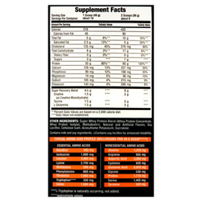 Super Advanced Whey Protein, Vanilla - Nutritionix Jun 4, 2022 — INGREDIENTS: Other Ingredients: Super Whey Protein Blend (Whey Protein Concentrate, Whey Protein Isolate), Maltodextrin, ...