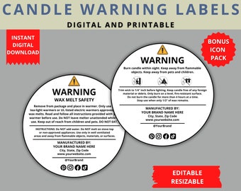 Wax Melt Warning Labels | Etsy Wax Melts Warning Label Template, Printable Wax Melt Safety Sticker, Editable Wax Cubes Instructions, 1.5" 2" 3" Round Warning Label. TDS-06 SandraTemplateShop (184) $3.42 $4.56 (25% off) 100x Candle & Melt Warning Labels - 4 different colours / types 100 pcs. 4cm diameter. Soy wax Melts Safety stickers FurNFlame (135) $7.77