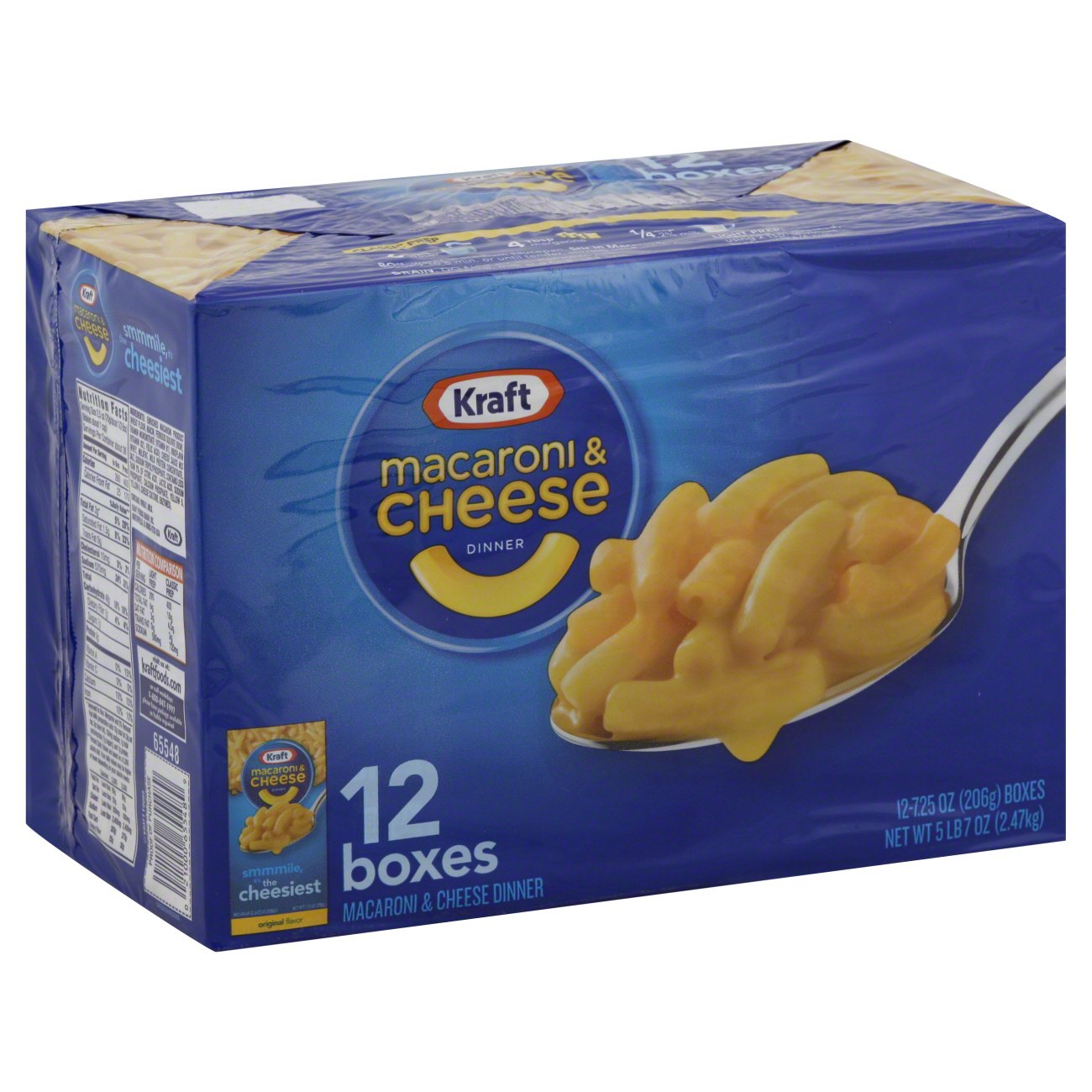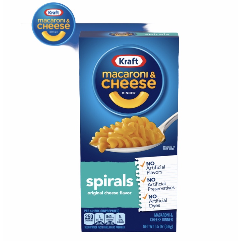 Kraft Macaroni & Cheese Dinner, Original Flavor - Cub Foods No artificial flavors. Per 1/3 Box (Unprepared): 250 calories; 1 g sat fat (4% DV); 560 mg sodium (24% DV); 9 g total sugars. Smmmile, it's the cheesiest. Even more reasons to love it. This box of Kraft Macaroni & Cheese Dinner may look simple, but it actually contains some extraordinary things. Inside you'll find happy childhood memories, tons of blissful smiles and our delicious elbow ...