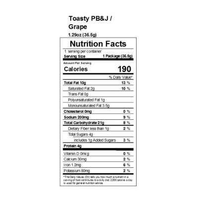 Nutrition Facts for Austin PB&J Sandwich Crackers - MyFoodDiary Austin PB&J Sandwich Crackers. Nutrition Facts. Serving Size. package. 1 package = 39g. Amount Per Serving. 190. Calories % Daily Value* 14%. Total ... (DV) tells you how much a nutrient in a serving of food contributes to a daily diet. 2,000 calories a day is used for general nutrition advice. 24.5 Net Carbs Per Serving Add to Food Diary. Eat ...
