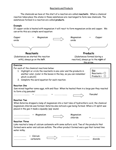 Reactants Products Chemical Reaction Teaching Resources | TpT A chemical reactions activity where students measure the amount of carbon dioxide that is produced from the vinegar-baking soda reaction. The reaction is an excellent example to use when teaching about the reactants and products of chemical equations. The activity is completely described and directions to measure the carbon dioxide are given.