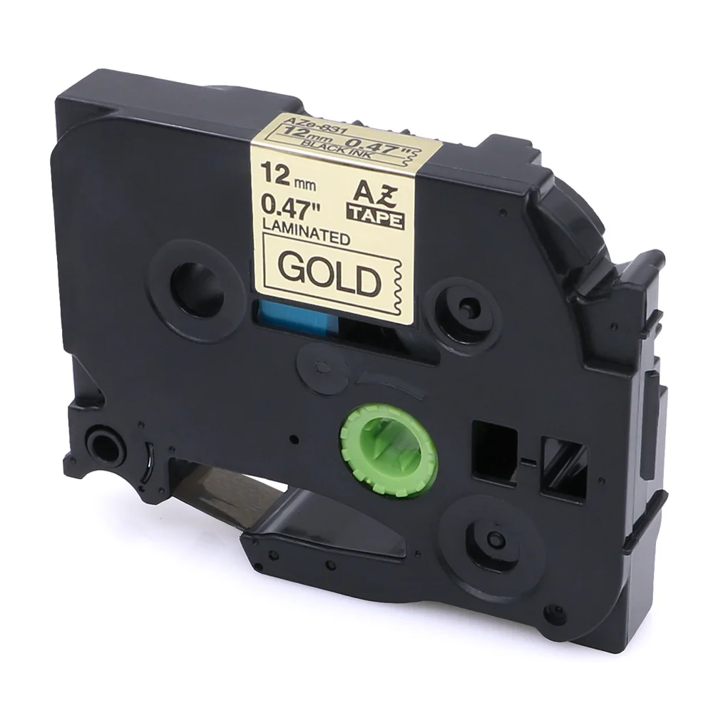 Unistar 2PCS 12mm Black on Gold Printer Ribbon Compatible for Brother P-touch Label Printer h110 Label Tape Tze-831 TZe831 TZ831