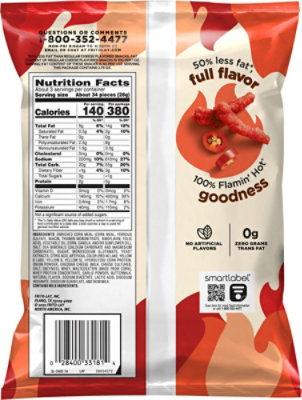 Hot Cheetos Dietary Details - Proper Nutrition | NutritionOfPower.com Cholesterol 0.0 mg. Sodium 250.0 mg. Potassium 0.0 mg. Total Carbohydrate 14.0 g.Protein 3g There are 320 calories in a 1 package serving of Cheetos Crunchy Flamin' Hot (Package). Calorie breakdown: 60% fat, 36% carbs, 4% protein.Food Search: hot cheetos nutrition facts and information. Sodium 250.0 mg. Potassium 0.0 mg. Total Carbohydrate 15 ... CHEETOS® FLAMIN' HOT® Popcorn Flavored Snacks | Cheetos However, we recommend that you check the label on a specific product for the most current and accurate nutritional information. If you need assistance, please contact Consumer Relations toll-free at 1-800-352-4477Monday through Friday between 9:00 a.m. and 4:30 p.m. Central Standard Time. Ingredients