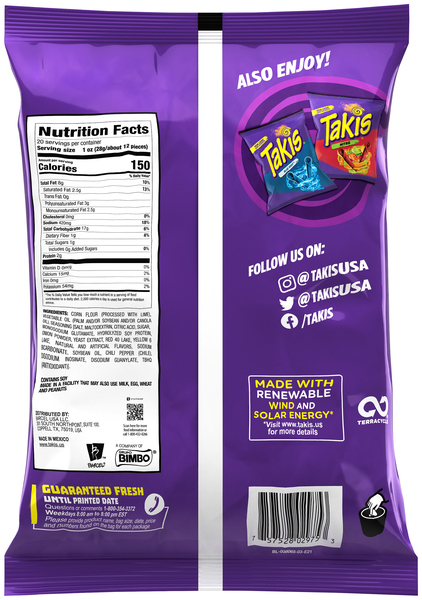 Food label takis. Calories in Takis Calories, fat, protein, and carbohydrate values for for Takis and other related foods. Takis (snack) - Wikipedia Takis are a Mexican brand of rolled corn tortilla chip snack made by Barcel, a subsidiary of Grupo Bimbo.Fashioned after the taquito, it comes in numerous flavors, the best selling of which is the chili-lime "Fuego" flavor, sold in distinctive purple bags. Besides the rolled corn chips, Takis also produces a number of other snacks with the same flavor lines, including a number of different ... This Food Label Is Lying To You | Prevention Wrong. According to a recent analysis from Consumer Reports, Xochitl's chips contained GM corn, even though they claim to be GMO-free. Takis, on the other hand, were blissfully absent of GM corn ... Amazon.com: takis food Takis Mini Fuego and Nitro Rolled Tortilla Chips, Hot Chili Pepper and Lime and Habanero and Lime Artificially Flavored, 25 Individual Snack Packs, 1.23 Ounces Each, Net Weight of 30.75 Ounces 1.23 Ounce (Pack of 25) 4.6 (8,385) $1218 ($0.40/Ounce) Save more with Subscribe & Save SNAP EBT eligible
