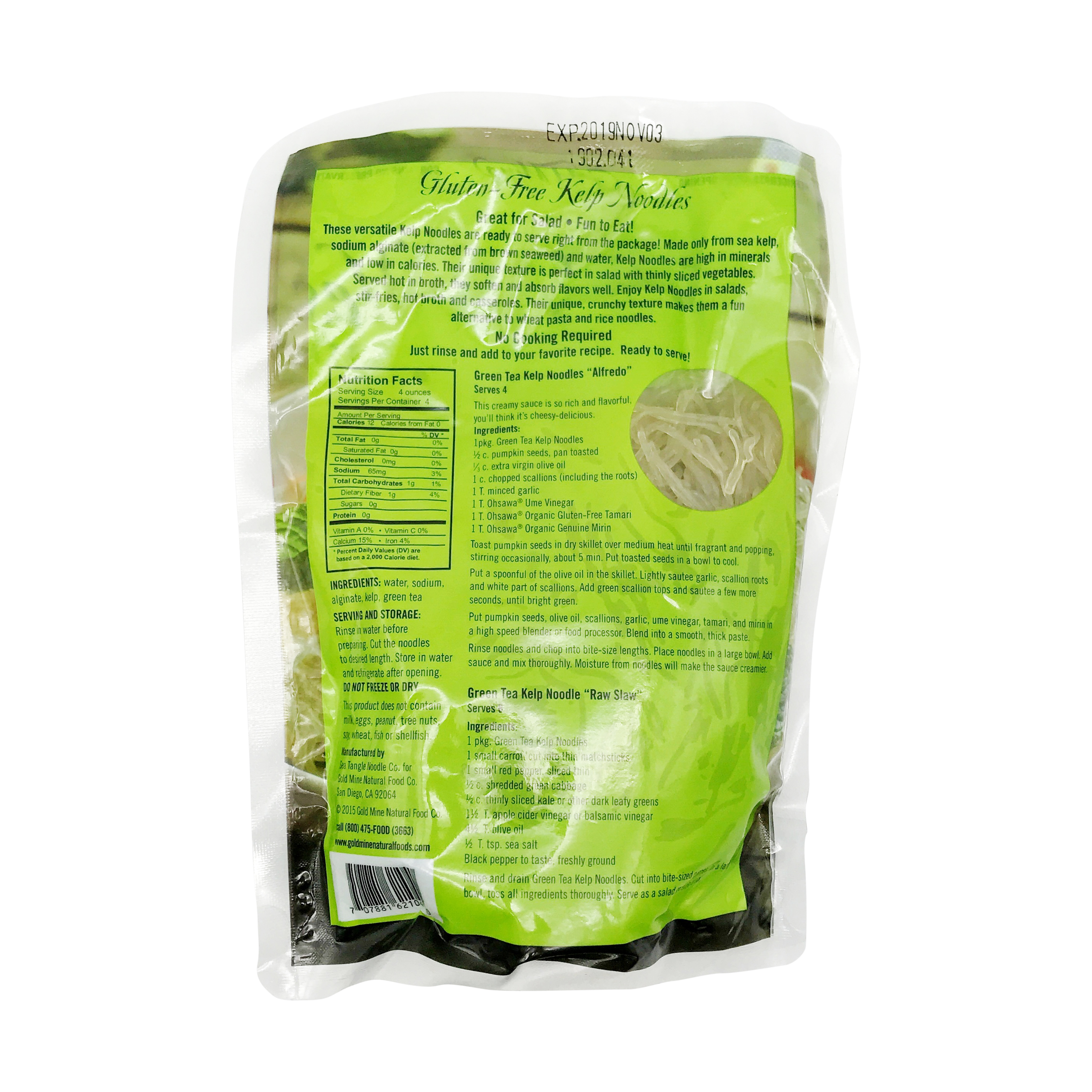 Kelp Noodles - National Nutrition Articles Kelp noodles typically have 3 ingredients; kelp, sodium alginate and water. Kelp is edible brown seaweed and sodium alginate is a salt derived from seaweed. These simple ingredients make kelp noodles a healthy alternative to pasta because seaweeds are nutrient-dense and are full of minerals. Kelp noodles contain zero fat, zero cholesterol and ...